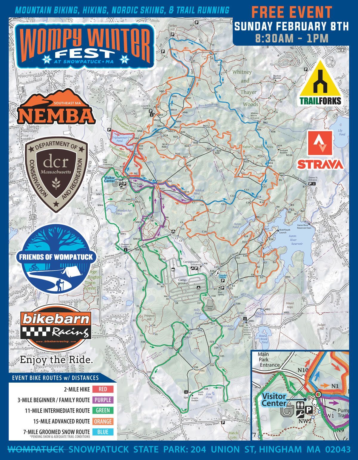 Weather permitting, Wompy Winterfest will magically morph into Snowpatuck with a groomed route for fat bikes and nordic skiing.