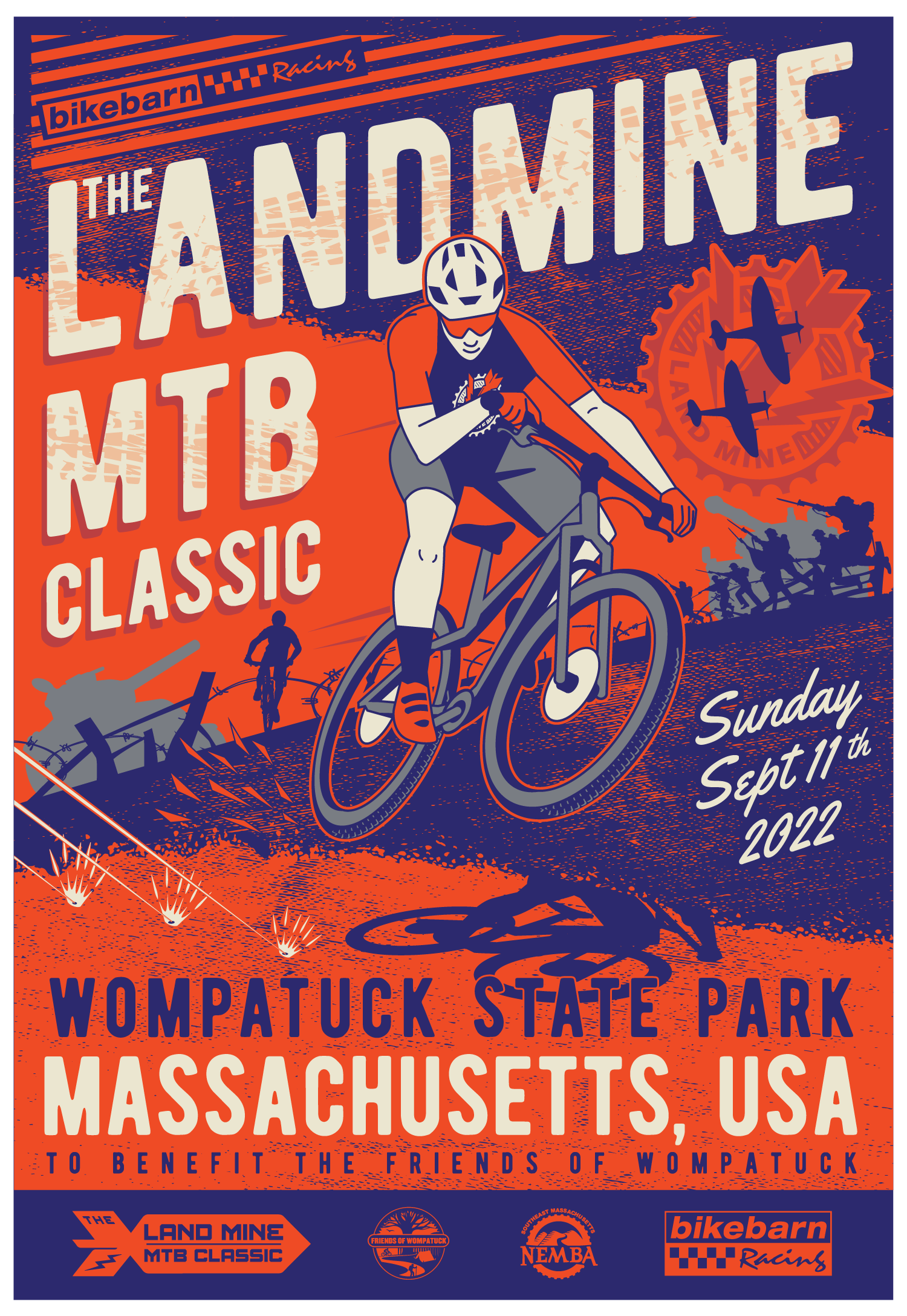 Over the years, The Friends of Wompatuck have worked tirelessly to build and improve trails, to construct new bridges, and continue to make the park accessible to as many people as possible. All proceeds from every Landmine MTB Classic have gone directly toward making improvements to Wompatuck State Park. By registering and participating in the Landmine MTB Classic, you’re helping to carry on that stewardship.